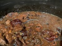 Equipment: Slow cooker, frying pan, sharp knife, chopping board, tablespoon, sieve
